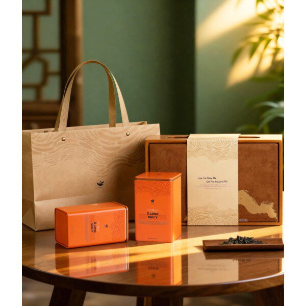 | Hộp quà bao gồm: | + 2 hộp trà Ô Long Như Ý – mỗi hộp 300g + 1 Túi xách + 1 Postcard + 1 Giấy hướng dẫn cách pha trà |