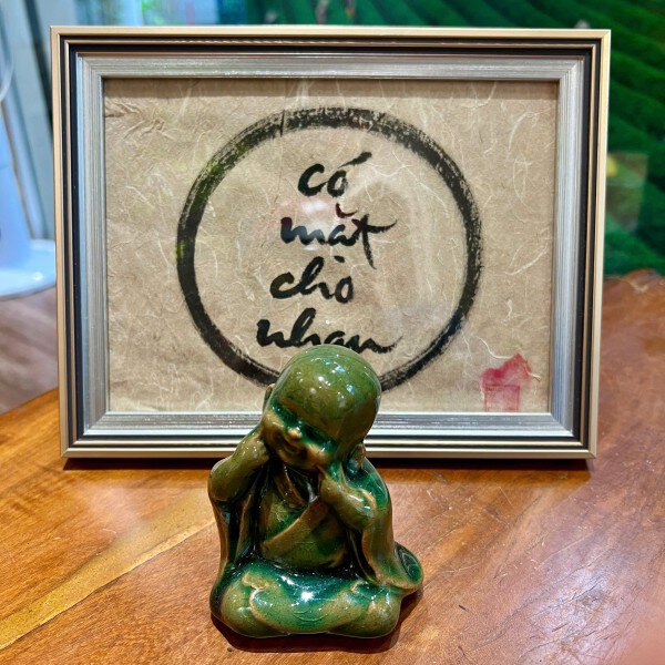 Chất liệu Tượng chú tiểu an nhiên được làm từ nhiều chất liệu gốm tráng men rạn Bát Tràng Công dụng Trang trí nhà cửa (phòng khách, phòng làm việc). Mang lại cảm giác bình an, thư thái cho người ngắm nhìn. Làm quà tặng ý nghĩa.